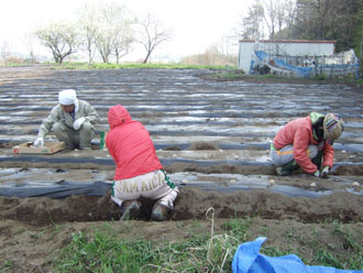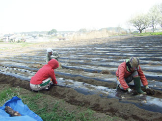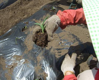 いよいよ野菜の赤ちゃん、苗木を植えていきます。