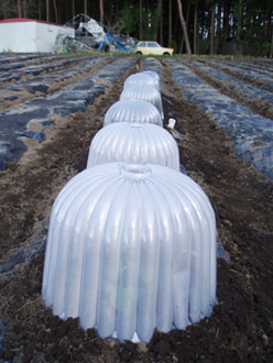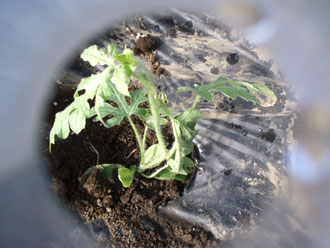 スイカ達は寒さに弱いので神殿(カサ)をかぶせて